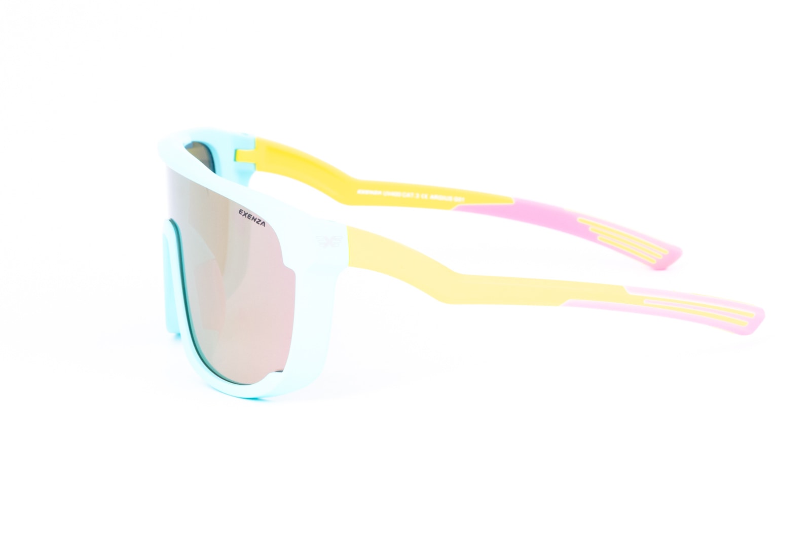 Линзы очков выполнены в сером цвете с легким розовым flash mirror, что не только стильно выглядит, но и обеспечивает надежную защиту от яркого света (категория светопропускания — 3). Вы можете выбрать свой идеальный стиль из ярких и привлекательных цветов оправы: мятный, розовый или желтый. С весом всего 32 грамма, вы почти не ощутите их на лице, а их размеры (ширина оправы – 158 мм, ширина линзы – 144 мм, высота линзы – 51 мм, расстояние между дужками – 134 мм, глубина посадки – 162 мм, длина дужки – 132 мм) делают их подходящими для любой формы лица.