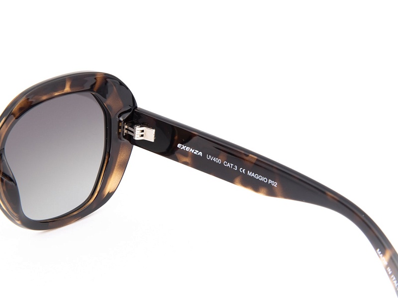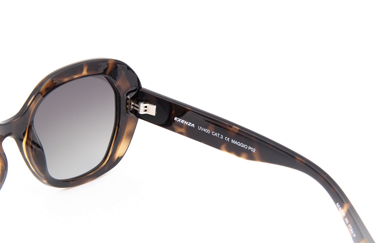 MAGGIO P02 — это очки для современной женщины, которая ценит природные паттерны и роскошь. Коричневая черепаховая оправа с золотыми металлическими акцентами, серый градиент линз и итальянское мастерство создают очки, которые будут привлекать внимание своей необычностью и элегантностью. Это очки для женщин, которые знают, что истинный стиль — это сочетание природного очарования и современного дизайна.