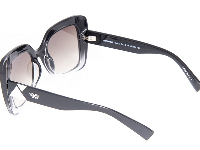 VERGA P01 — это очки для современной женщины, которая ценит смелый стиль с экстравагантными деталями. Полупрозрачная чёрно-дымчатая оправа с омбре-эффектом, золотистыми стразами, белыми геометрическими акцентами и итальянским мастерством создают очки, которые будут привлекать внимание своей роскошью и современностью. Это очки для женщин, которые знают, что истинный стиль — это смелое выражение себя через детали и геометрию.